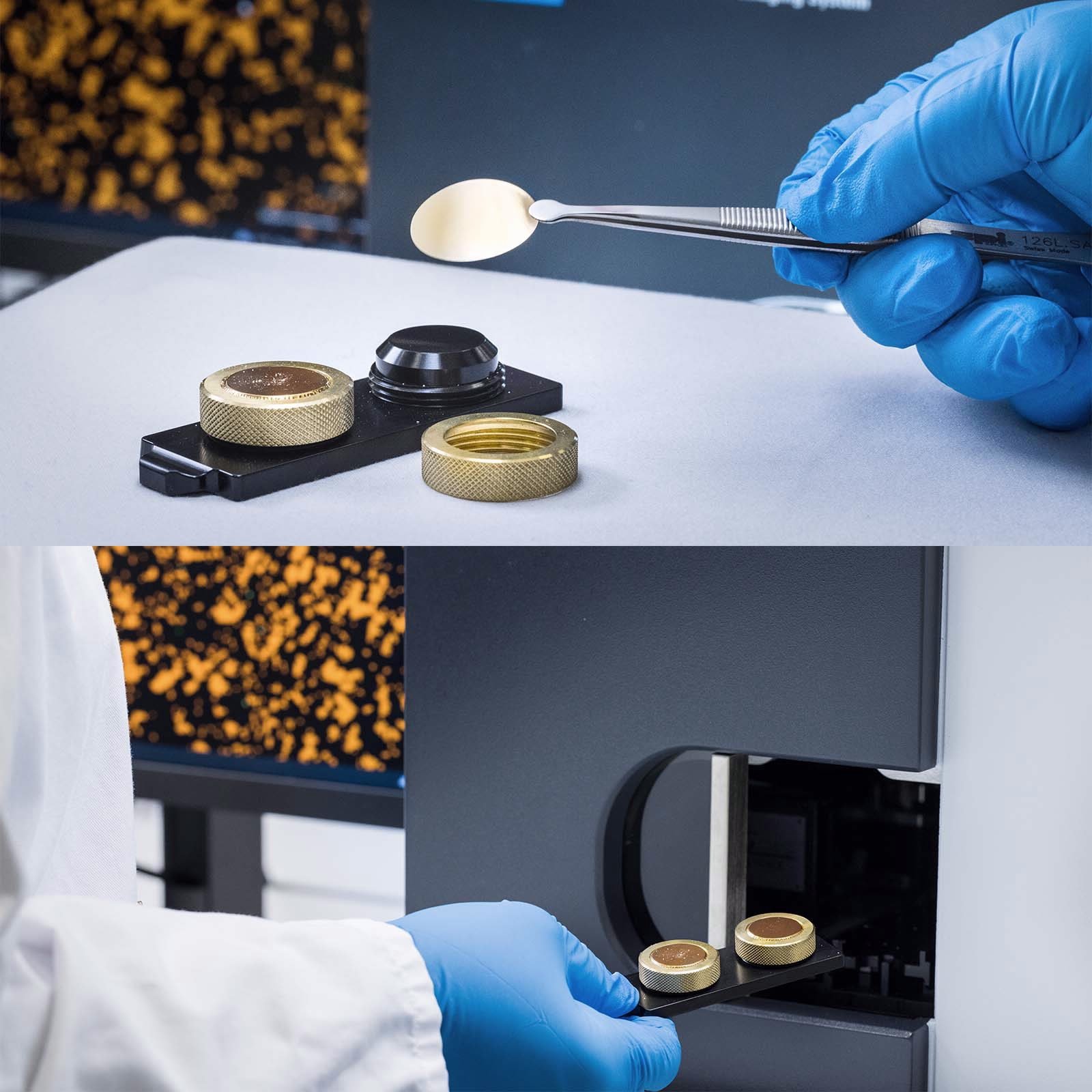 - Iebūvētais ATR ļauj turpināt izmeklēt nezināmas daļiņas, nenoņemot paraugu. Spekrus var eksportēt uz ārējām bibliotēkām identitātes apstiprināšanai.